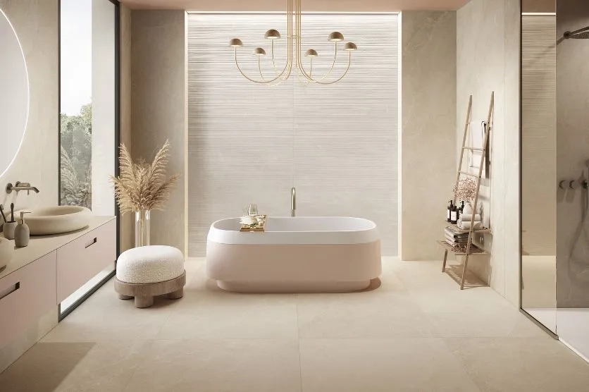 Comment faire ? Rien de plus simple... Pour votre carrelage, privilégiez des teintes neutres et délicates comme le beige, le crème, le gris clair, le rose pâle...Côté aspect, optez pour le grès cérame effet pierre naturelle ou bois, pour une ambiance zen et apaisante. Pour un rendu authentique, choisissez des finitions mates et des textures délicates. Dans la salle de bain, préférez des sanitaires aux lignes minimalistes, des baignoires îlot aux courbes harmonieuses et des meubles aux lignes simples et légères.