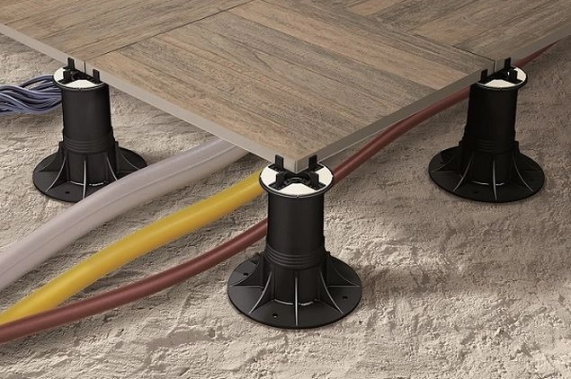 Facile à mettre en oeuvre, la pose d’une terrasse sur plots est une solution très pratique pour faire passer des câbles électriques ou des conduits d’eau sous le carrelage, avec des plots réglables en hauteur au millimètre près.