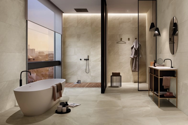Inspiré des sédiments de schiste, BLADE donne naissance à un nouveau grès cérame vibrant. Avec des surfaces coordonnées intérieur-extérieur, il crée un espace d’une rare beauté qui associe résistance et réalisme.