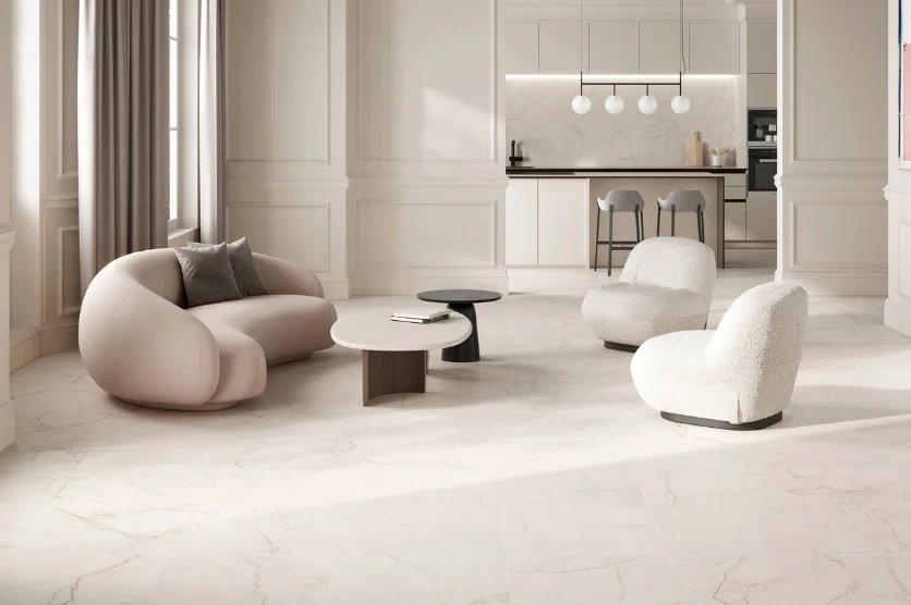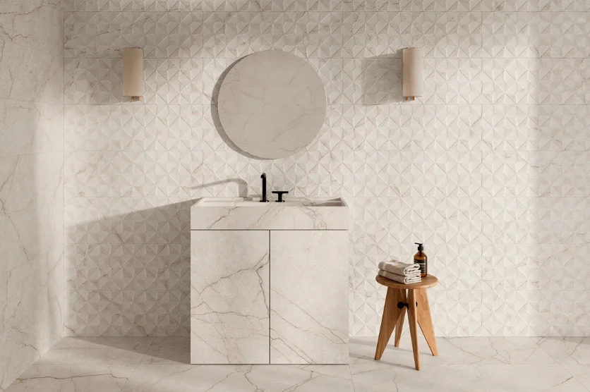 Lode, une interprétation raffinée du marbre Avorio di Segesta, où pureté et sophistication se rencontrent. Ce carrelage incarne l'essence même du luxe discret, avec son veinage délicat et ses tons terre qui se détachent sur un fond crémeux lumineux, créant une harmonie visuelle captivante.