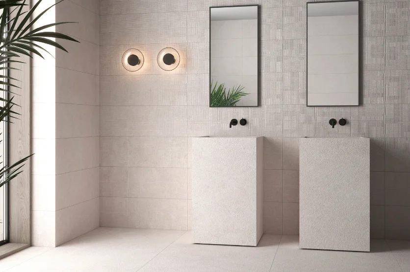 Mondrago, une réinterprétation contemporaine du marbre Zarci. Ce carrelage d'exception allie grain fin et veinures délicates pour créer une atmosphère à la fois dynamique et élégante, parfaite pour sublimer vos espaces de vie.
